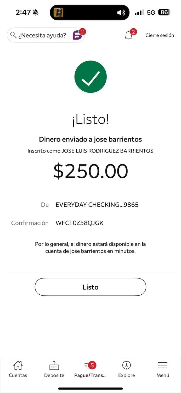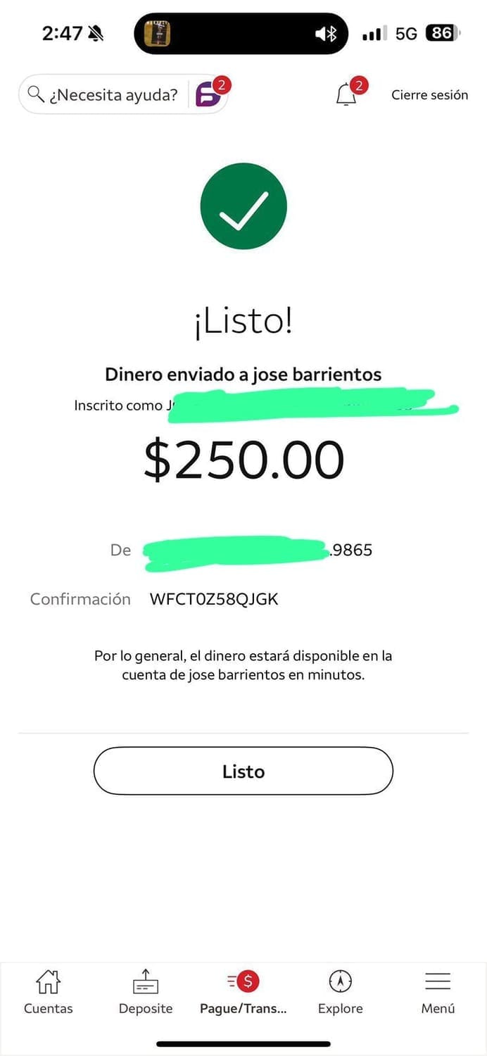 Cliente de Estados Unidos: 250USD (zelle)
