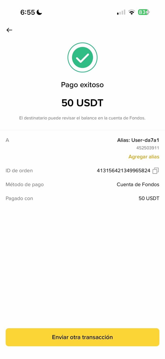 Cliente de Estados Unidos: 50 USD (Binance)